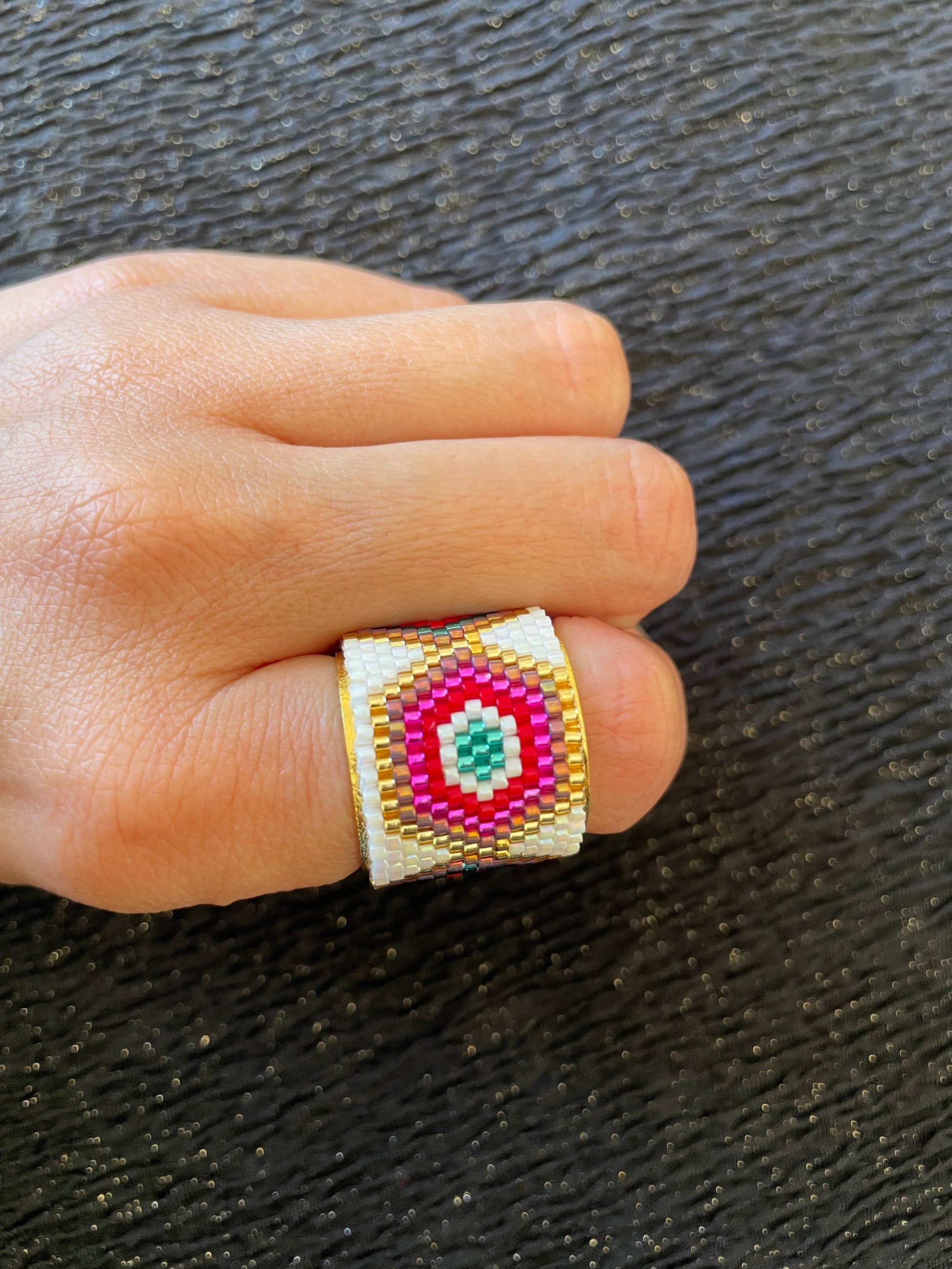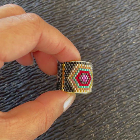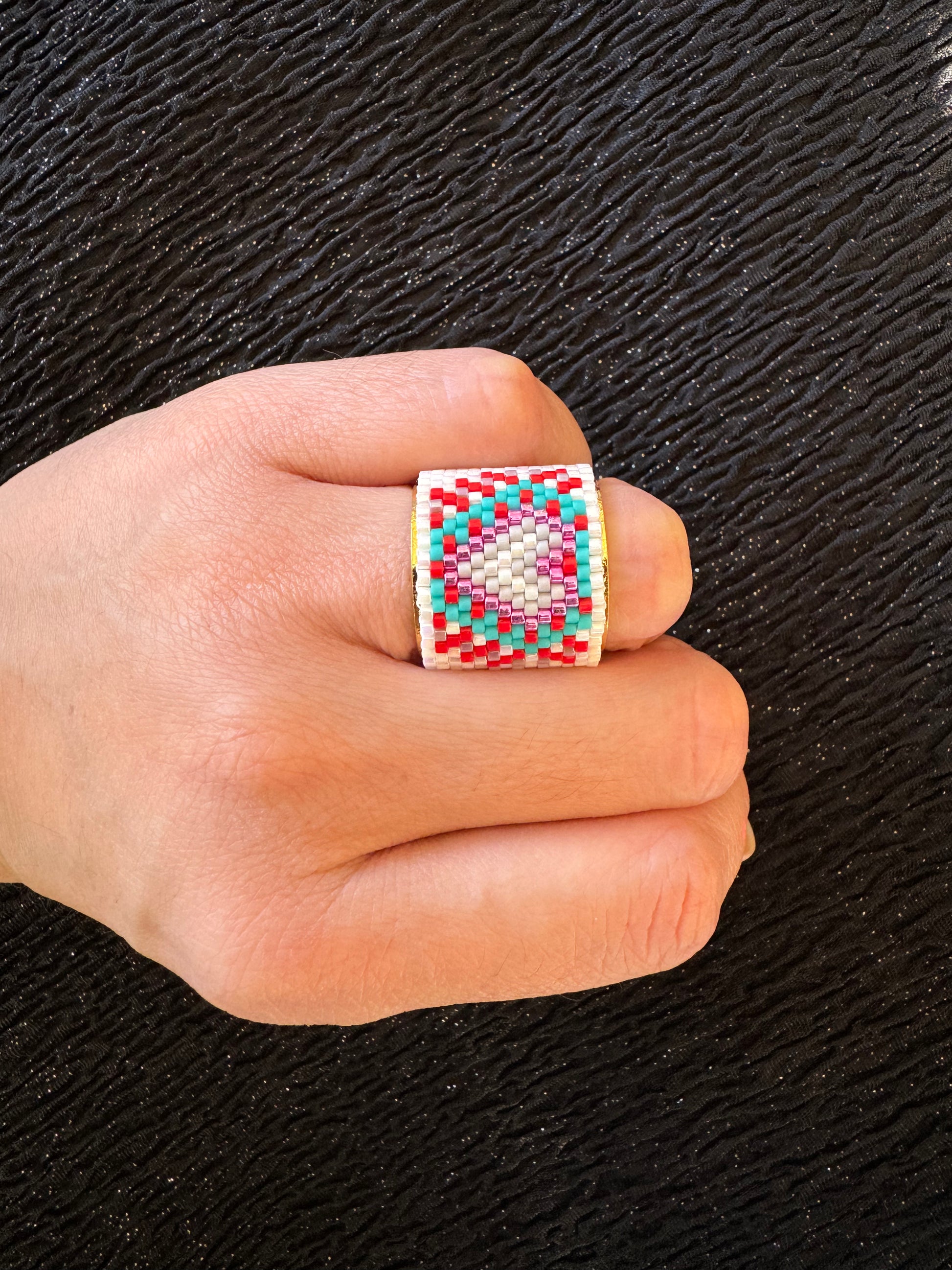 Material: Delicas miyuki con base ajustable bañada en oro de 24 kilates.